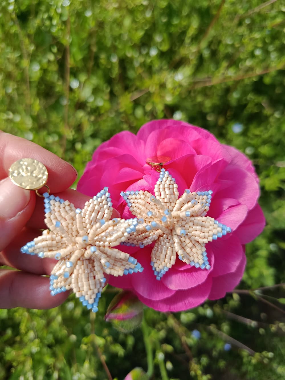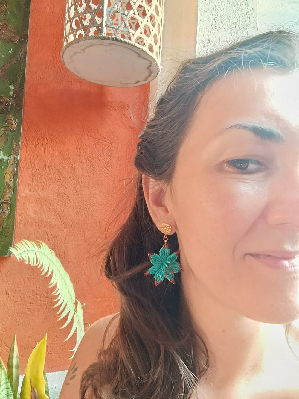 - Boucles d’oreilles en tissage de perles de verre créés et tissées au fil et à l’aiguille par mes soins