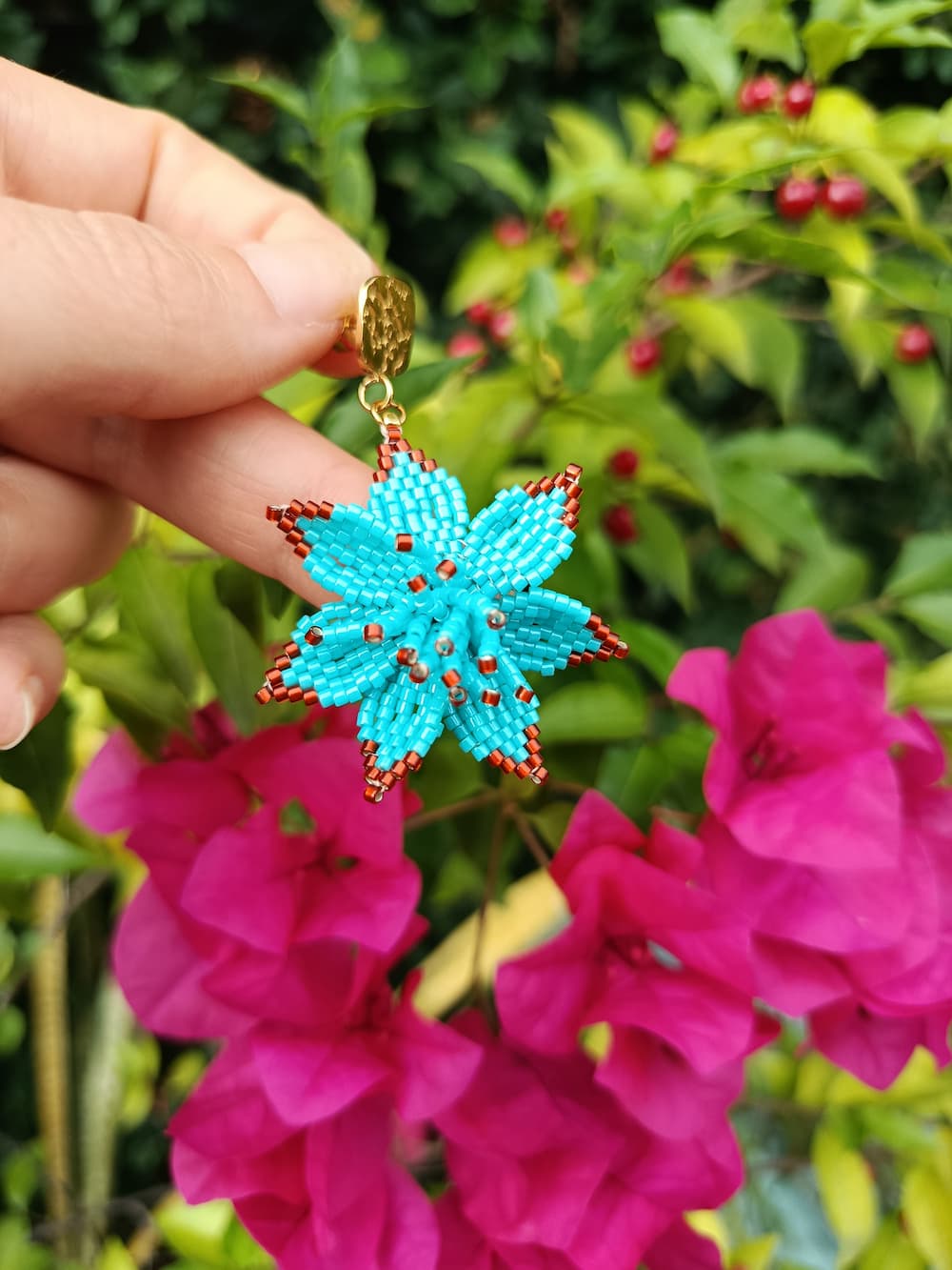 • Boucles d’oreilles en tissage de perles de verre créés et tissées au fil et à l’aiguille par mes soins