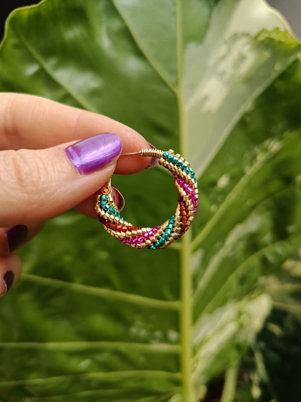 • Boucles d’oreilles en tissage de perles de verre créés et tissées au fil et à l’aiguille par mes soins
