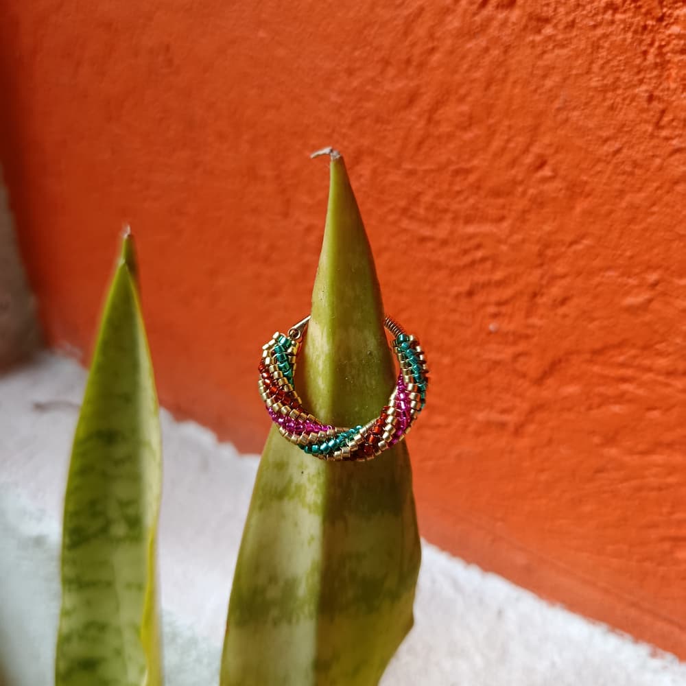 - Boucles d’oreilles en tissage de perles de verre créés et tissées au fil et à l’aiguille par mes soins